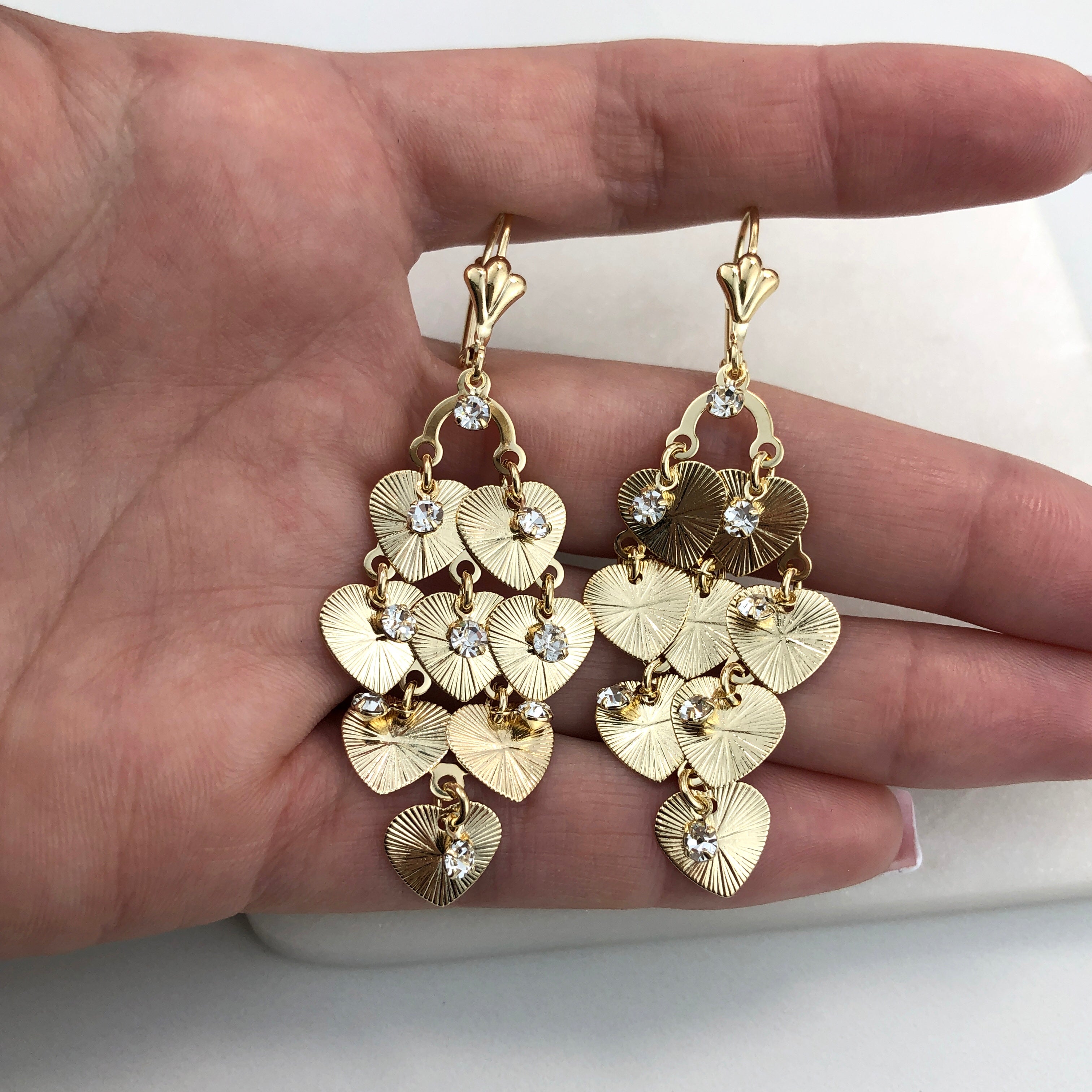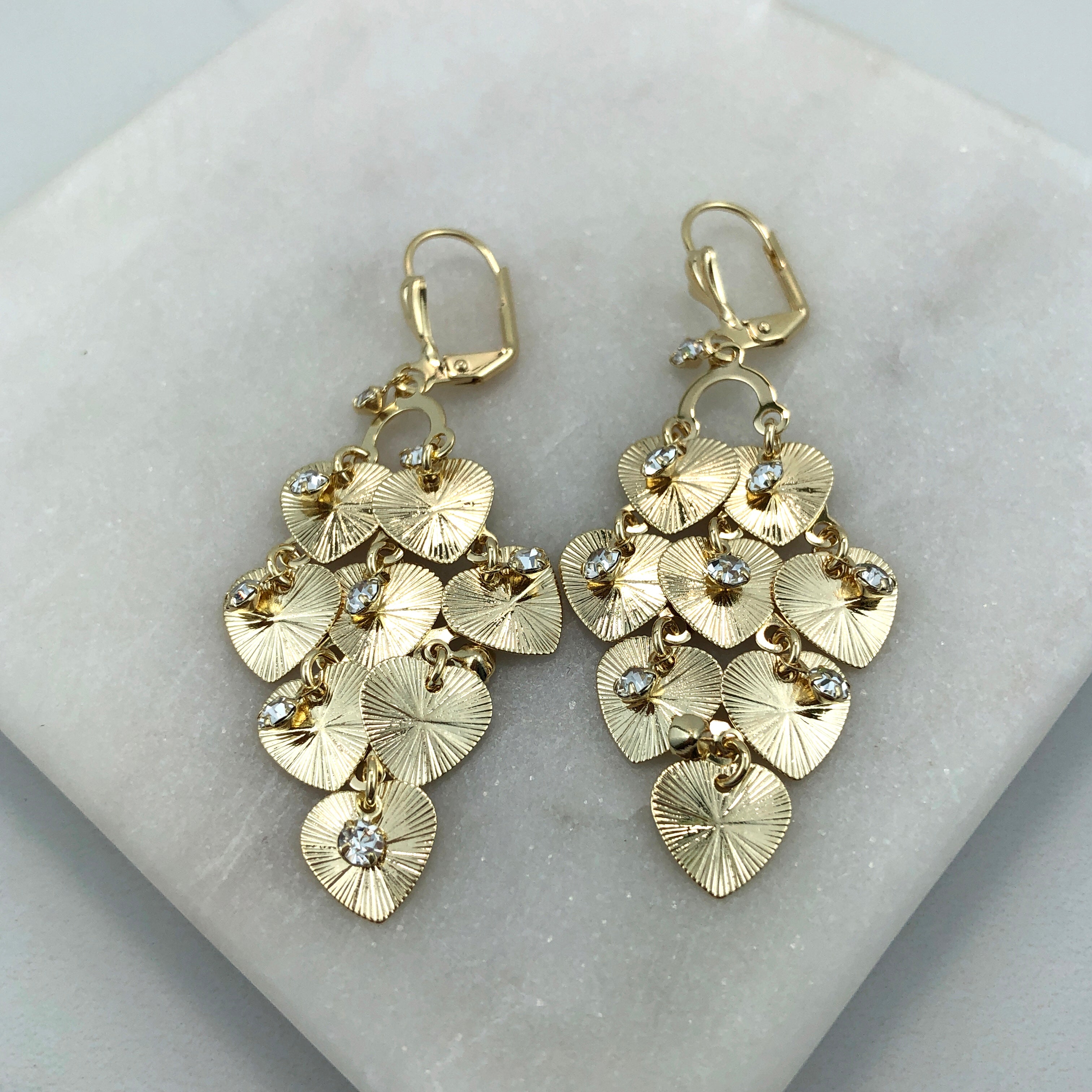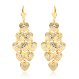 18K Gold Layered Oro Laminado Clear CZ Hearts Design Chandelier Leverback Earrings 21.0437/1