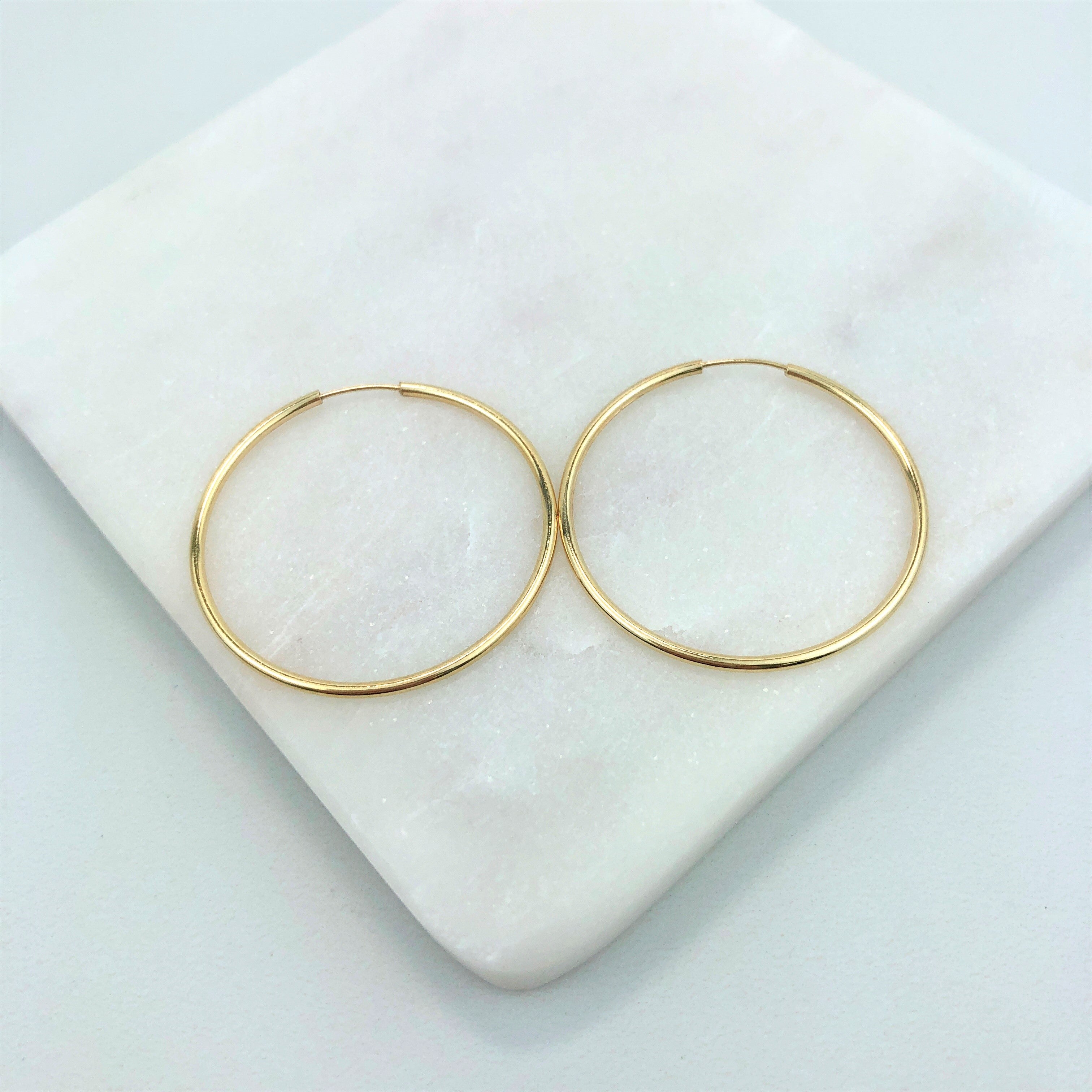 18K Gold Layered Oro Laminado 34mm Endless-Loop Hoops Earrings Wholesale 21.0095