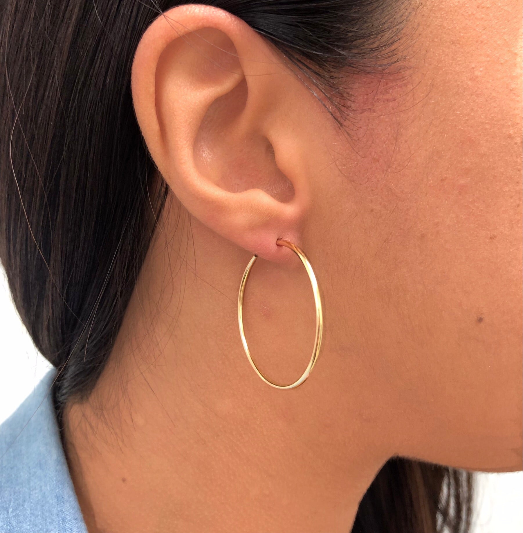 18K Gold Filled Oro Laminado 34mm Endless-Loop Hoops Earrings Wholesale 21.0095