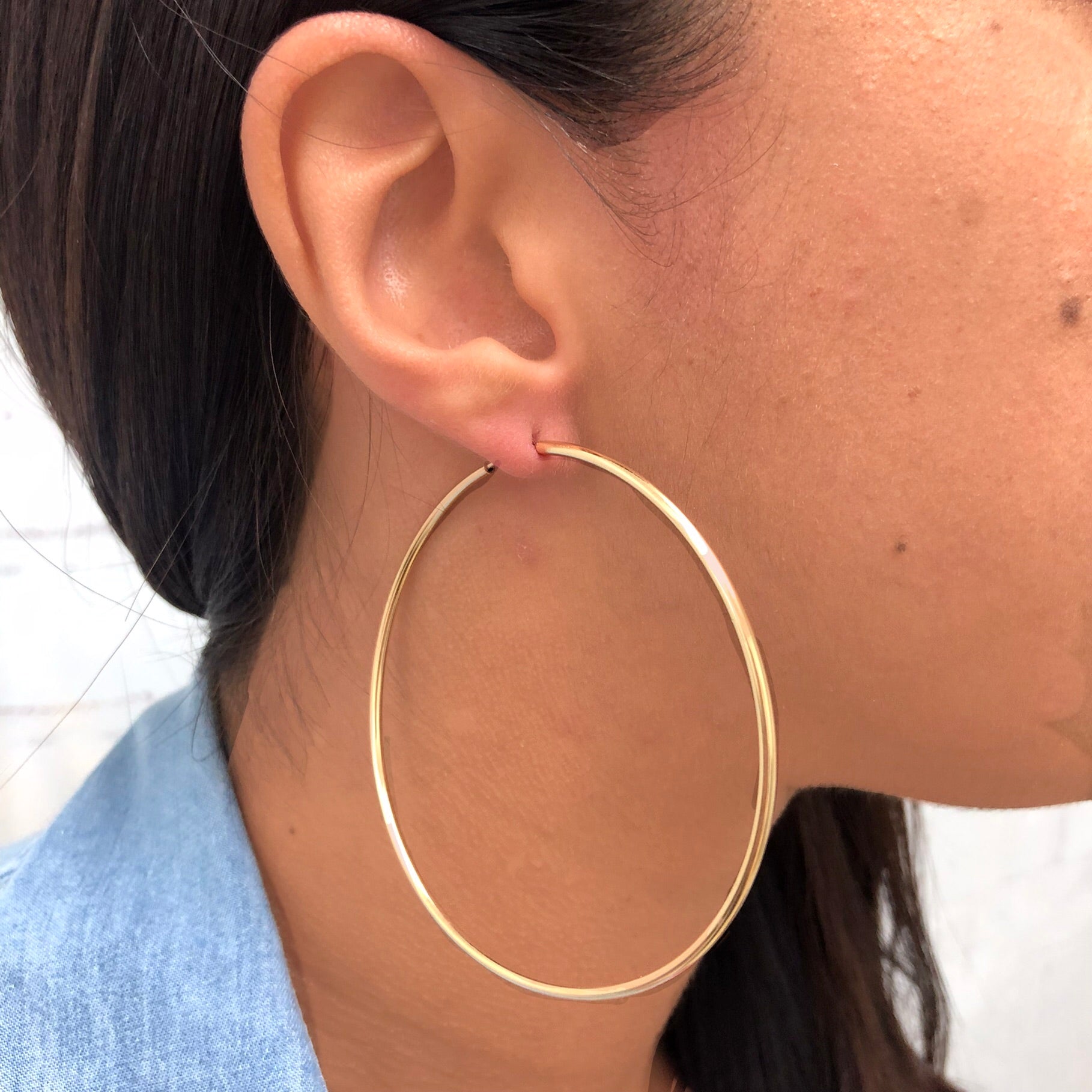 18K Gold Filled Oro Laminado 50 mm Double Texturized Twisted Hoops Wholesale 21.0241