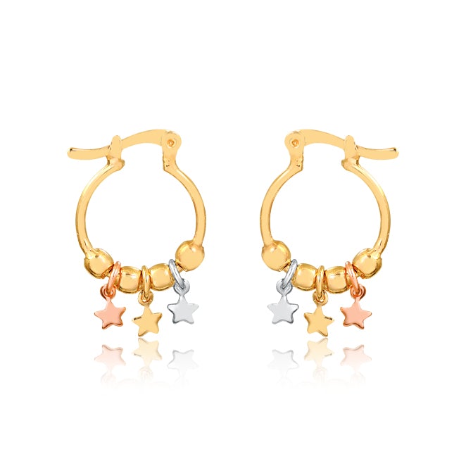 18K Gold Filled Oro Laminado 15 mm Cylinder Hoops with Tri-Tones Stars Drop Wholesale 21.0302