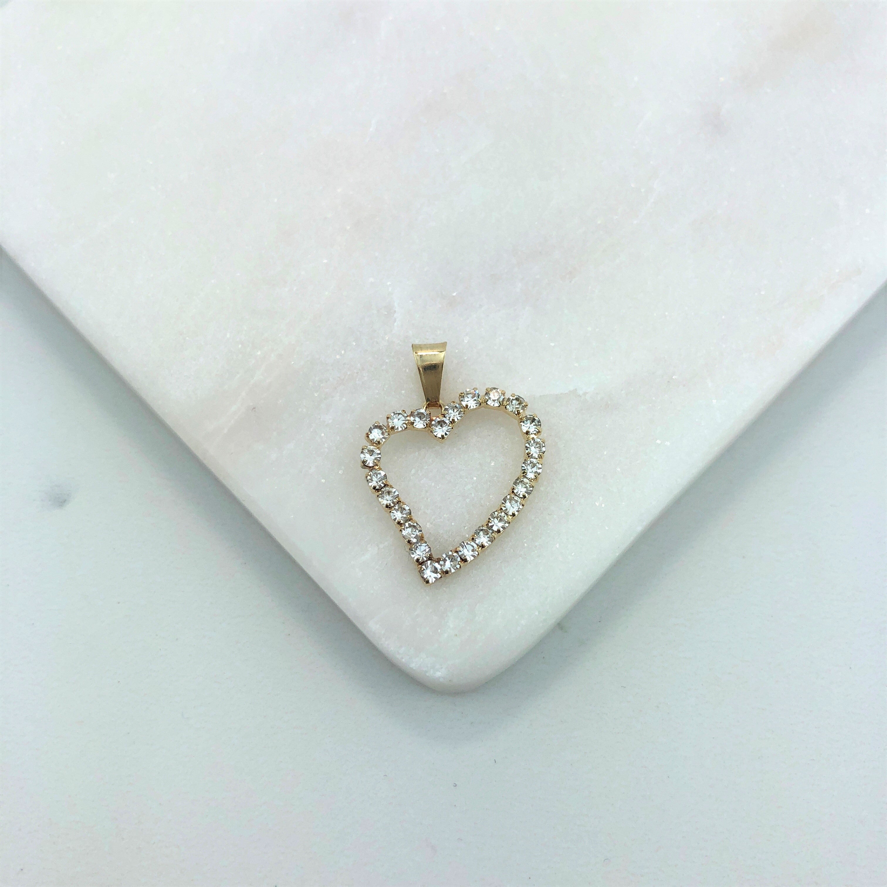 18K Gold Layered Oro Laminado Clear Cubic Zirconia Heart Shape Design Pendant 31.0202