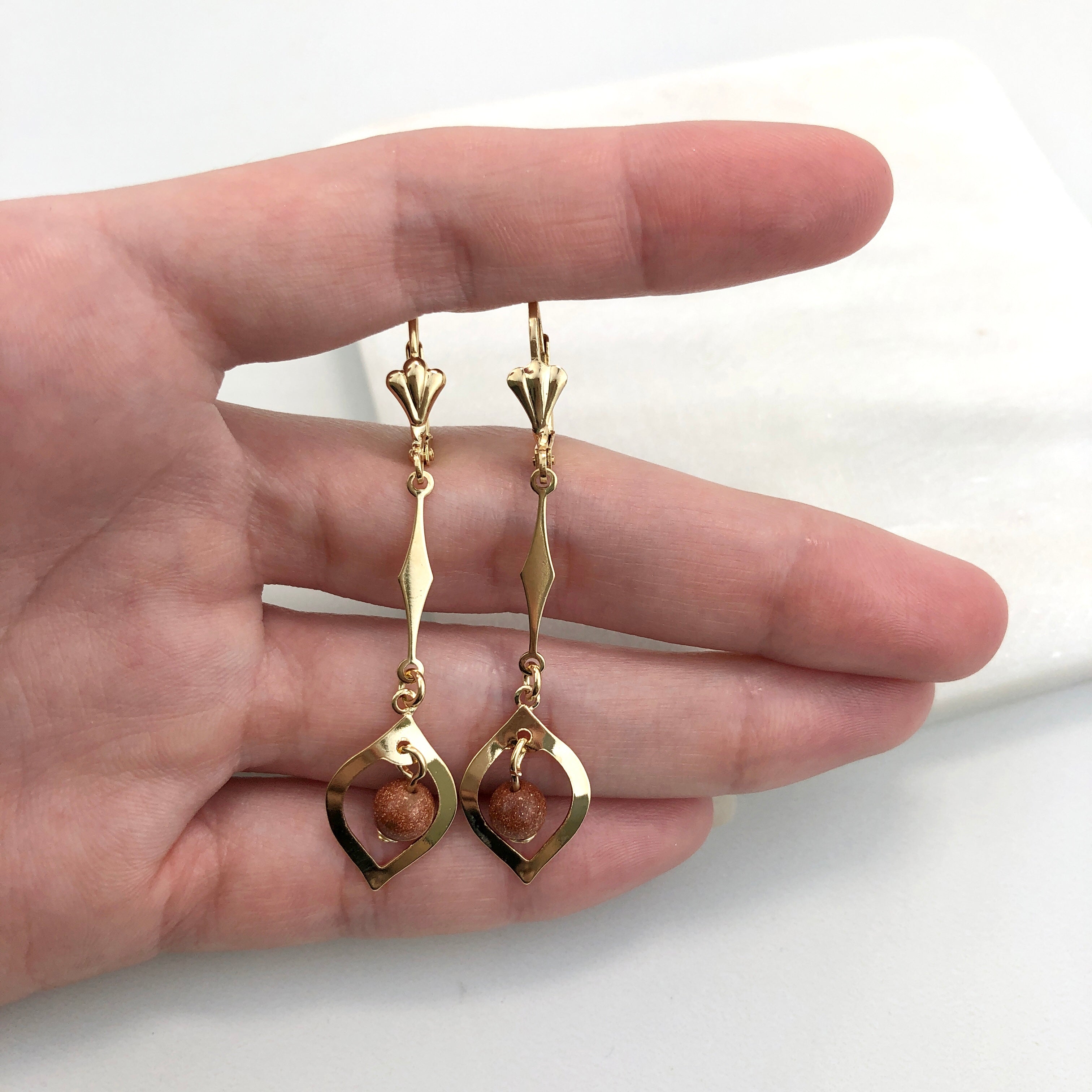 18K Gold Filled Oro Laminado Gold Stone Venturina Dangle Earring Wholesale 21.0134/16