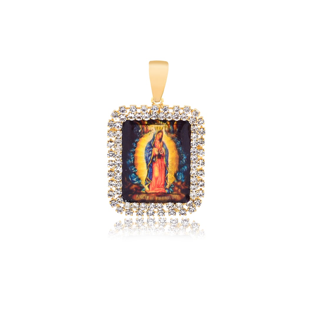 18K gold filled Oro laminado Enamel Our Lady of Guadalupe, Virgen de Guadalupe with White Cubic Zirconia Square Charms Pendant Wholesale 31.0001/17