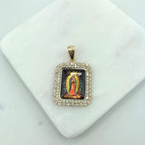 18K Gold Layered Oro Laminado Enamel Virgen de Guadalupe CZ Square Pendant 31.0001/17