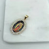 18K gold filled Oro laminado Enamel Our Lady of Guadalupe, Virgen de Guadalupe with White Cubic Zirconia Oval Charms Pendant 31.0002/17