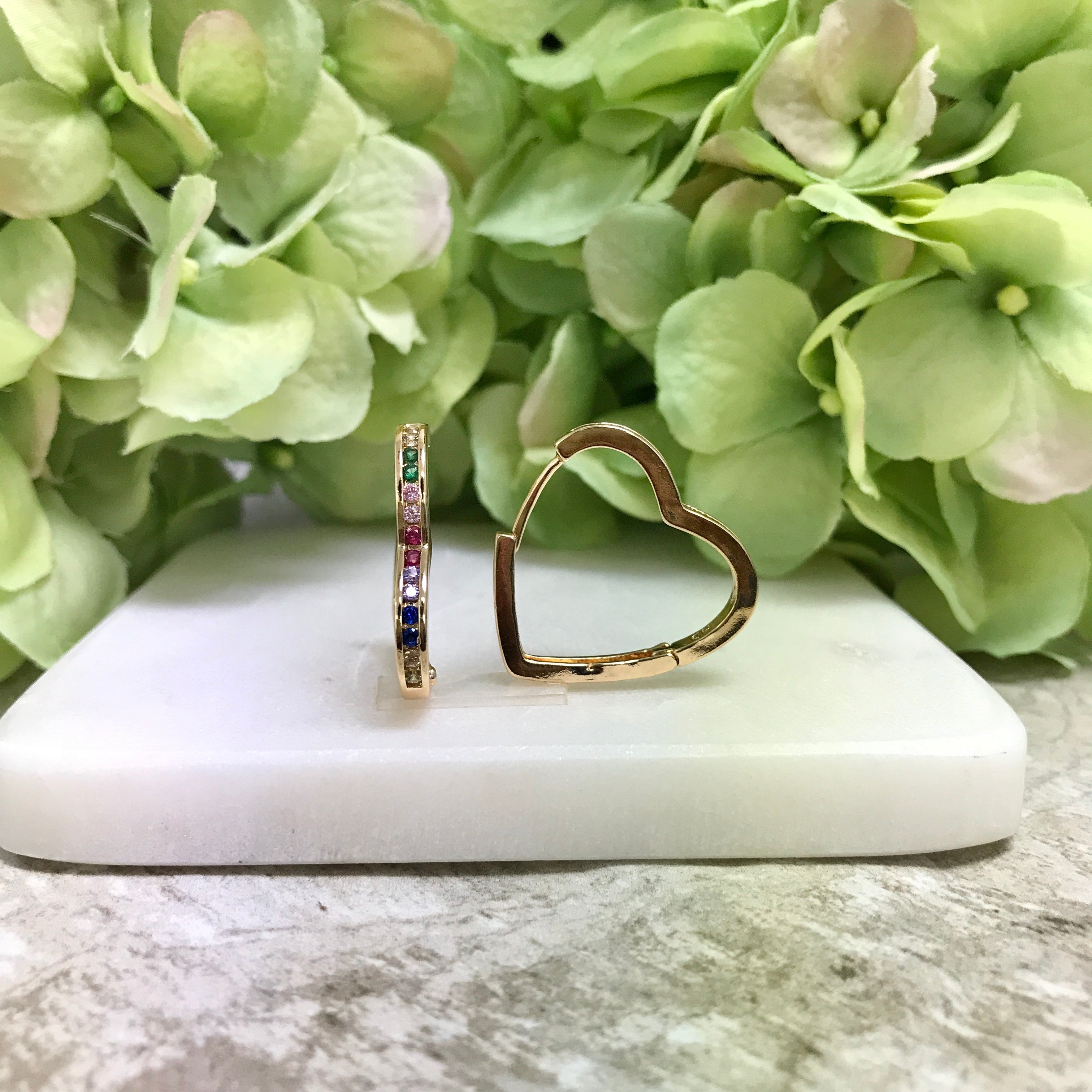 18K Gold Layered Oro Laminado 26mm Multicolor Cubic Zirconia Heart Shape Huggies Wholesale 23.1591